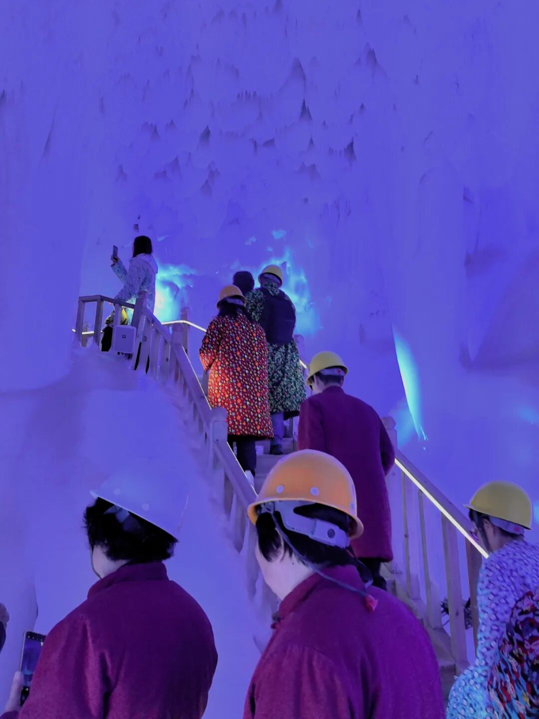 “刚走进冰洞就打了个寒颤,秋日里能见到这么壮观的冰柱,太值了!”这是游客们初见自然冰洞群时的共同感慨。在导游的带领下,大家踩着石阶深入洞内,犬牙交错的冰凌在灯光下泛着晶莹光泽,滴水成冰的清凉与洞外秋日暖阳形成奇妙对比,快门声此起彼伏,定格下这亿万年形成的自然奇迹。登顶玉皇顶时恰逢云雾缭绕,人形山体在云海中若隐若现,导游适时讲解着“河汾名胜”的传说,帮年长游客扶稳台阶、为摄影爱好者寻找机位。有游客笑着说:“西安国旅的导游不光懂风景,更懂我们想拍好照片的心思!”