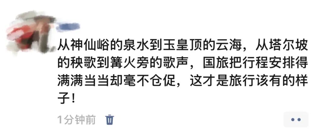 一位年轻游客在朋友圈分享:“从神仙峪的泉水到玉皇顶的云海,从塔尔坡的秧歌到篝火旁的歌声,西安国旅把行程安排得满满当当却毫不仓促,这才是旅行该有的样子!”